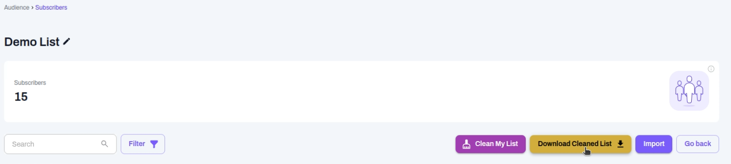 Using the Clean My List feature helps keep your audience lists accurate, up-to-date, and safe for communication. Once a list is cleaned, invalid or risky contacts are automatically marked as Inactive, reducing the chance of sending emails to undeliverable or problematic addresses.