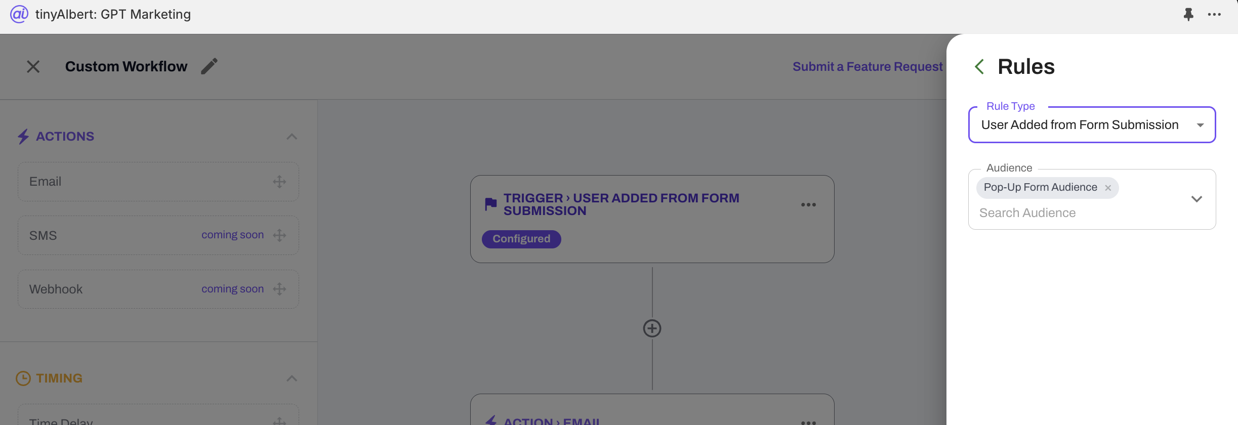 Note: Users manually added to an assigned audience will not enter the workflow; only those submitting forms will be considered.